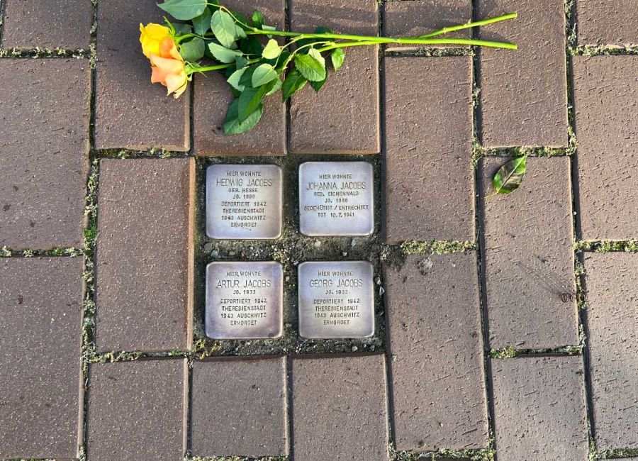 Im KZ Auschwitz-Birkenau endete für Hedwig Jacobs (45 Jahre alt) Georg (40 Jahre alt) und Artur (10 Jahre alt) am 23. Januar 1943, nach einer langen, leidensvollen und grausamen Lagerzeit, ihr Leben. Stolpersteine ihrer zum Gedenken wurden am 10. Juni 2016 verlegt.