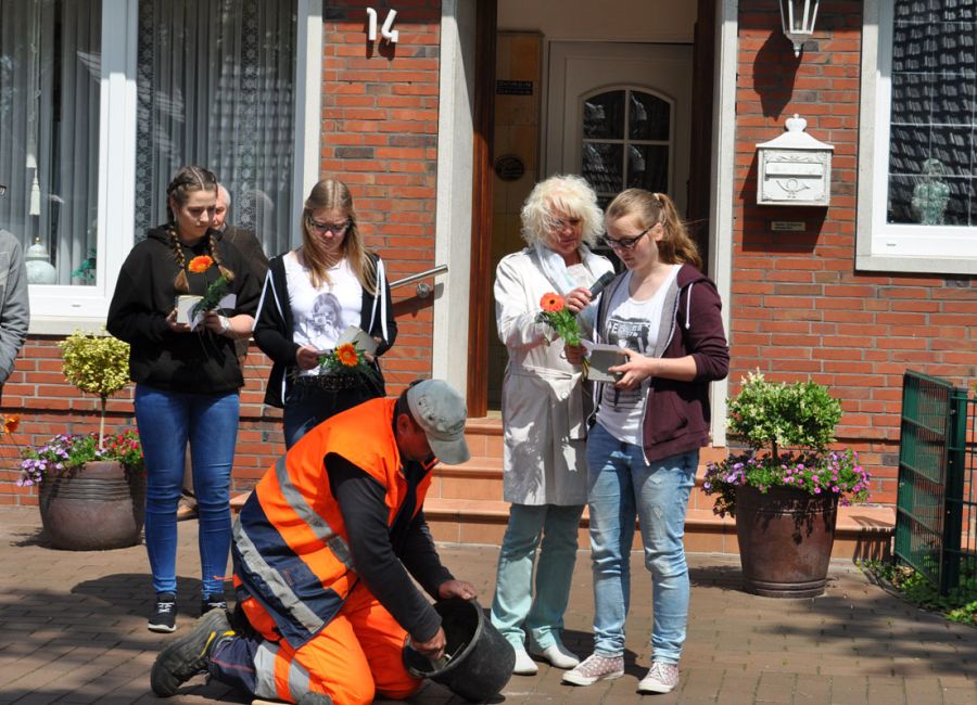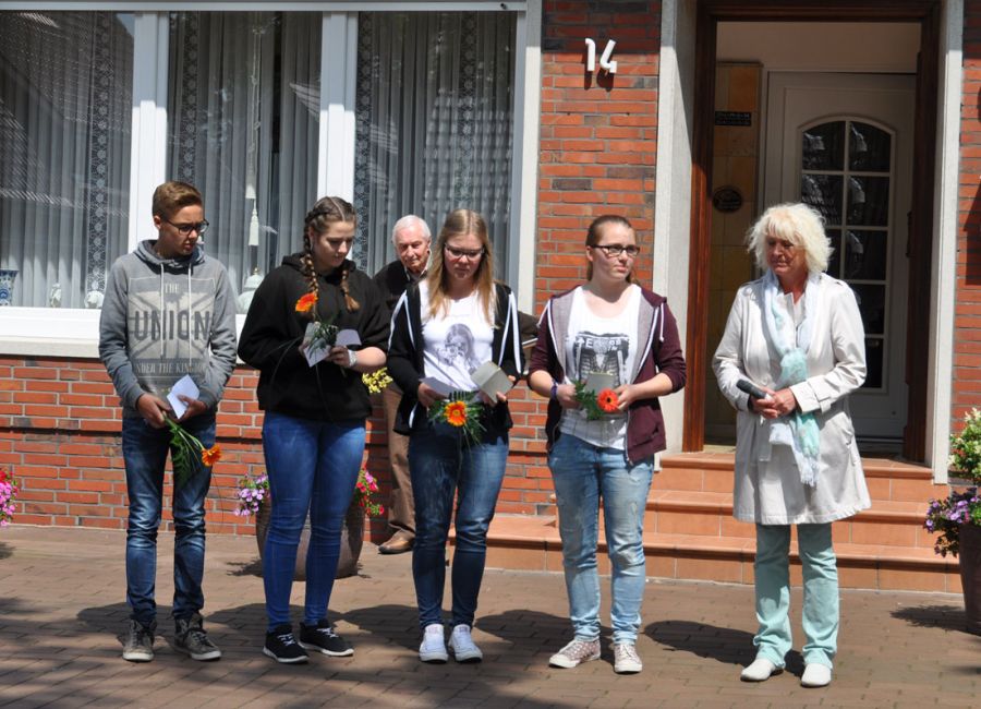 Die inhaltliche Gestaltung der Gedenkfeier wurde vom Wahlpflichtkurs Geschichte der Klasse 8 mit ihrem Lehrer Jürgen Jansen vorgenommen. Sie berichteten, wie schwer vorstellbar es für sie sei, wie so eine Judenverfolgung mit ihrem ganzen Hass überhaupt möglich gewesen ist.