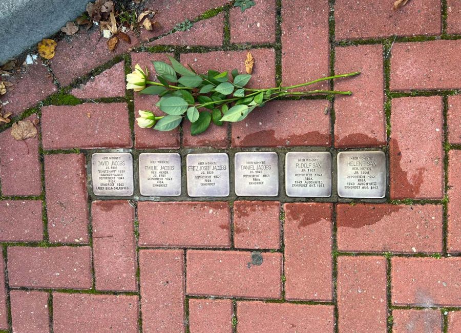 Aus der Familie Jacobs verlor David mit 45 Jahren sein Leben im KZ Stutthof, seine Frau Emilie starb in Riga im Alter von 40 Jahren und ihre beiden Kinder Fritz-Josef (mit 6 Jahren) und Daniel (mit einem Jahr) verloren ebenfalls in Riga ihr Leben. Zum Gedenken an sie wurden am 18. September 2018 Stolpersteine verlegt.