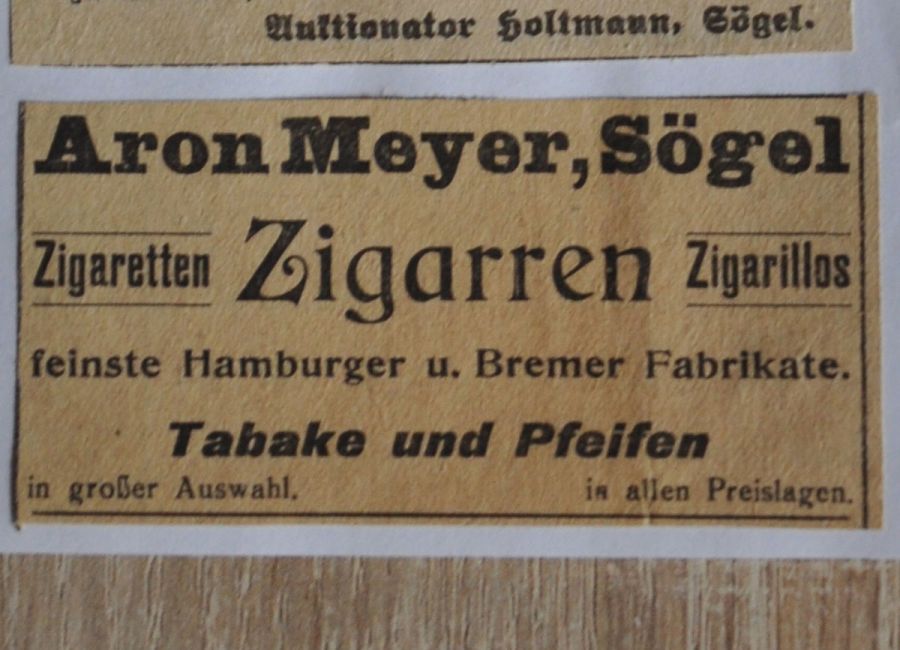 Bis zur Deportation am 13. Dezember 1941 wohnten Bertha und Aron Meyer in der damaligen Poststraße 126 heute (2023) Berßener Straße 3. Neben der Arbeit in der Landwirtschaft verkauften sie in ihrem Geschäft bereits in den 1930er Jahren Tabake, Pfeifen, Zigaretten und feinste Zigarren und Zigarillos.
