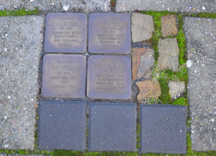 In Minsk und in Riga Salaspils verloren Moses (78), Frieda (70), Meier (37), und Jacob (31) ihr Leben, nur weil sie Juden waren. Am 22. Mai 2014 wurden ihrer zum Gedenken Stolpersteine verlegt.