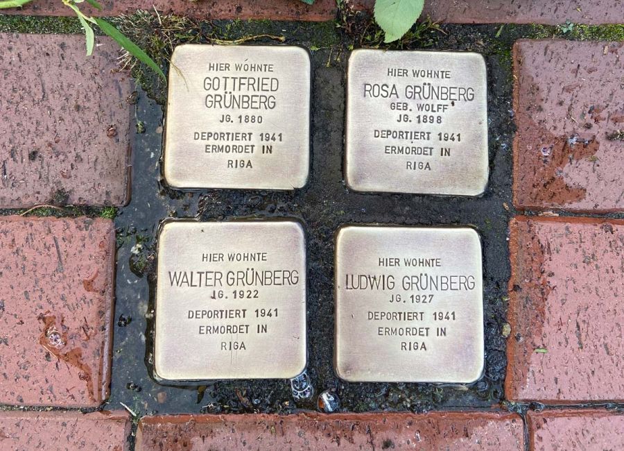 Während man von Walter Grünberg weiß, dass er im Juli 1941 in Riga im Alter von 19 Jahren ums Leben gekommen ist, weiß man von Rosa Grünberg nur, dass sie 1941, 43-jährig, ebenso wie Gottfried 1941 mit 61 Jahren, in Riga starb. Auch Sohn Ludwig kam im Jahr 1941 im Alter von 14 Jahren ebenfalls in Riga um. Ihrer zum Gedenken sind am 9. November 2011 Stolpersteine verlegt worden.