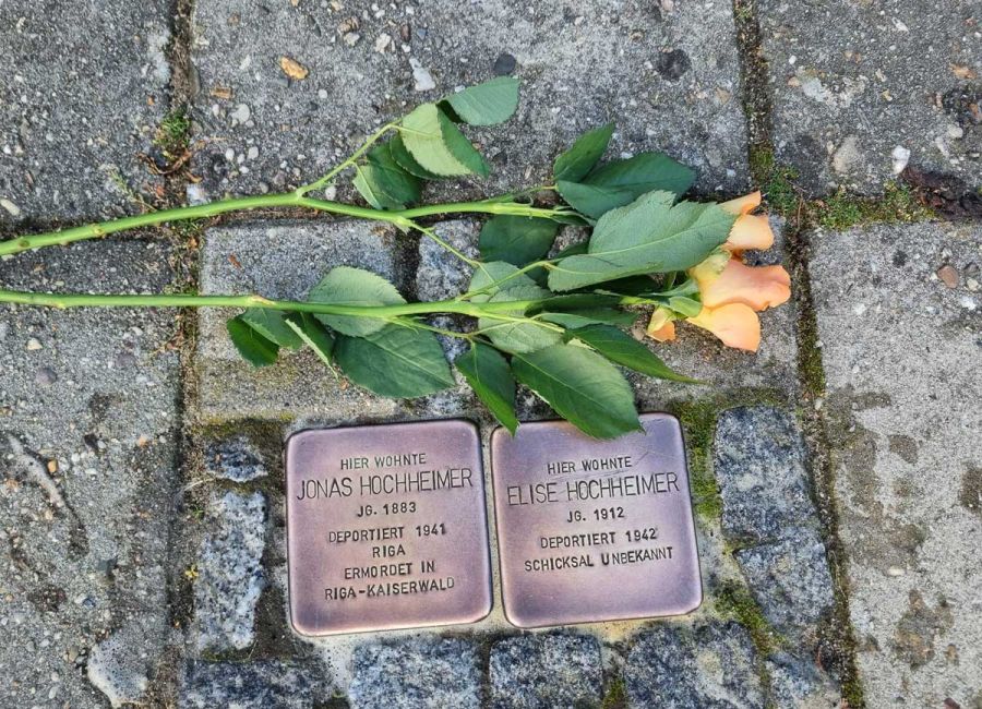 Elise Hochheimer, geboren am 22. Juli 1912, starb im KZ Auschwitz-Birkenau 1942 mit 30 Jahren. Jonas Hochheimer, geboren am 18. März 1883 kam im KZ Riga-Kaiserwald 1941 mit 58 Jahren ums Leben. Zum Gedenken an sie wurden Stolpersteine am 8. Mai 2013 verlegt.