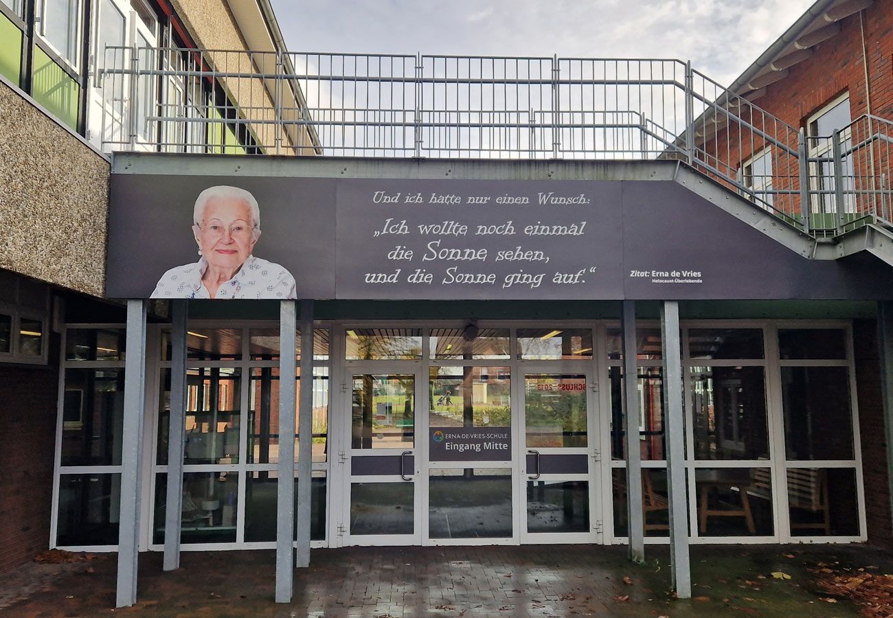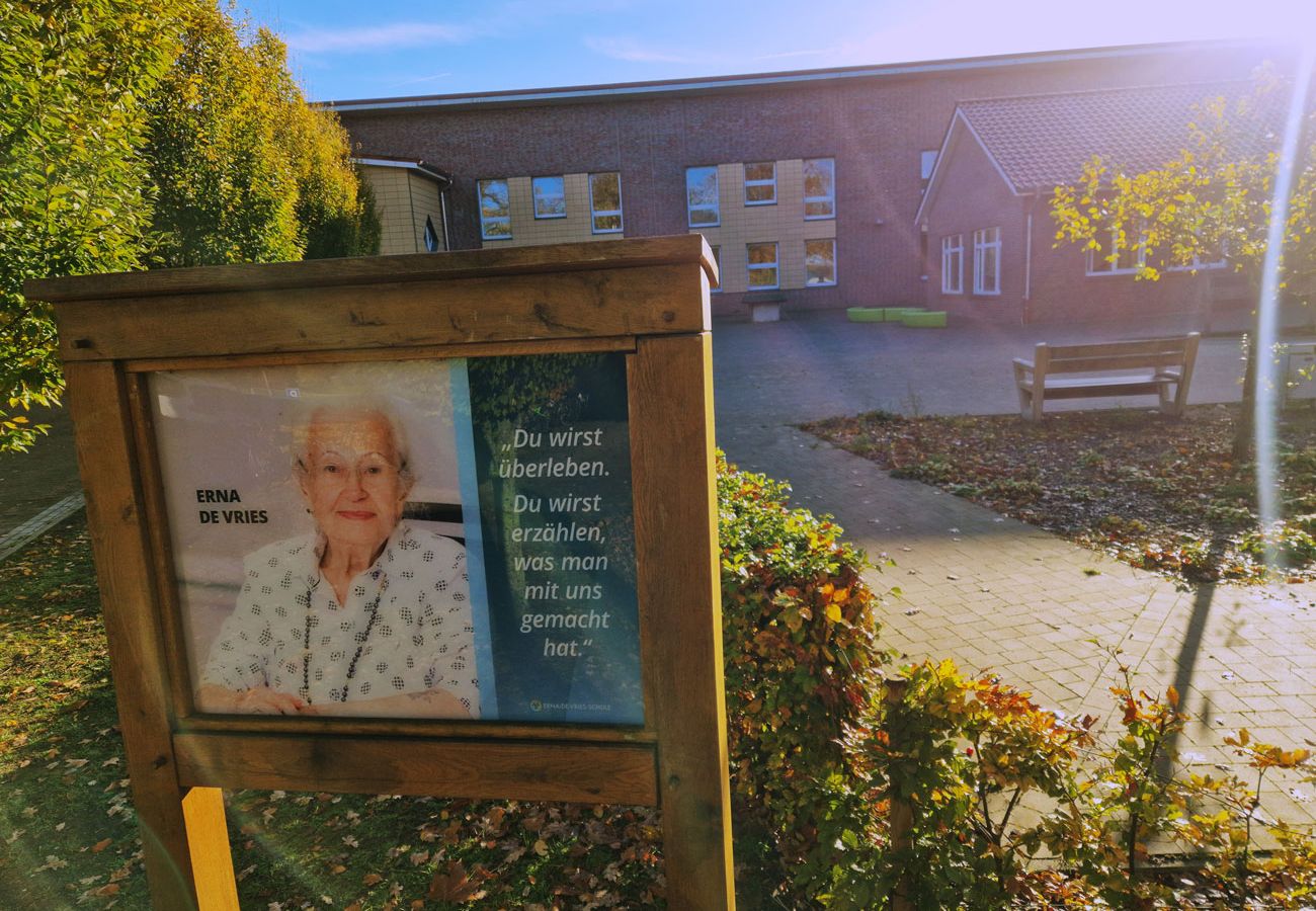"Ich wollte noch einmal die Sonne sehen" – Dieses Ziel war der Überlebensmotor von Erna de Vries aus Lathen um die Hölle des KZ's überstehen zu können. Es führte zu einem lebenslangen Einsatz für ihre Botschaft "Erinnerung wachhalten". Dieser beispiellose, willensstarke Antrieb steht bei der Erna de Vries Schule, Lathen hinter dem Konzept einer vielfältigen Erinnerungsarbeit: