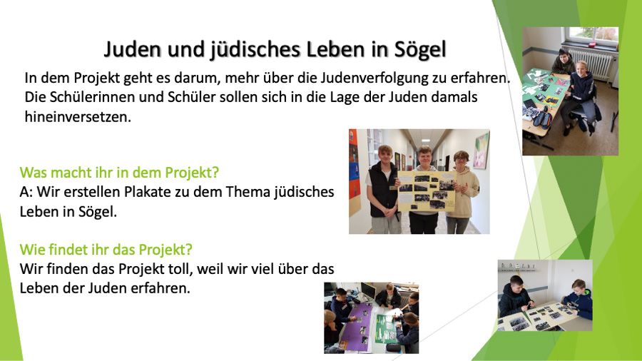 Die folgenden Beispiele unterschiedlicher, altersgerechter Herangehensweise an das Thema „Erinnerungsarbeit“ – wie folgend u. a. in beiden Presseberichten dokumentiert – zeigen, dass es möglich ist, verschiedene Jahrgangsstufen thematisch zu motivieren. Beispiel: S. 126 – S. 127 der Bernhardschule, Sögel und Beispiel: S. 128 – S. 129 der Schule am Schloss, Sögel.